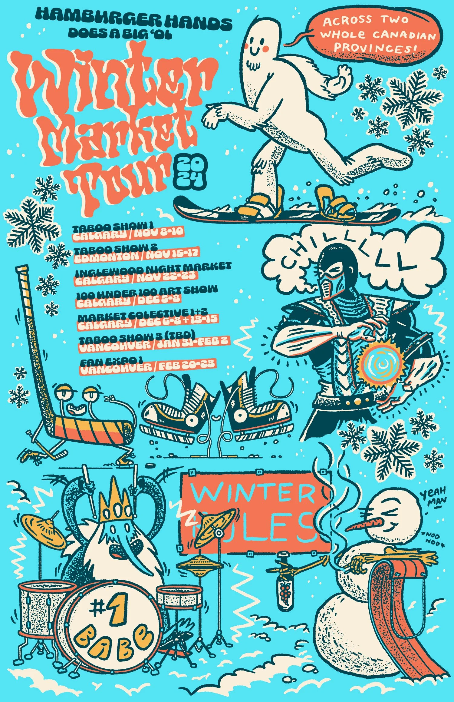 Renowned illustrator Hamburger Hands is hitting the road for a multi-province tour, bringing his unique and vibrant creations to art markets across Alberta ANNNNNND Brrrritish Columbia! Known for a bold style and unforgettable ass based arcane imagery that speaks to the heart and imagination, Hamburger Hands has captivated audiences with a prolific body of work. This tour is a rare chance to meet the artist, grab exclusive prints, one-of-a-kind merch, and maybe even catch a live sketch session! Whether you're an art collector, an enthusiast, or just curious to the mad wizard illustrator in person, donβt miss the opportunity to experience Hamburger Hands in his world up close.